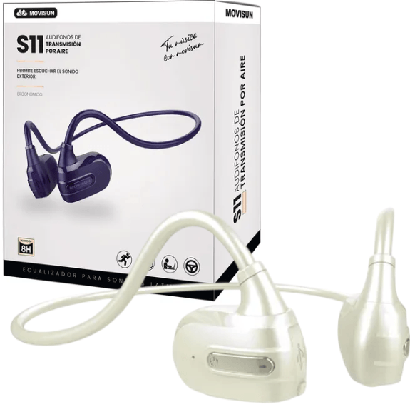 Descubre una forma revolucionaria de escuchar tu música y atender llamadas con los AirPods Movisun S11. Gracias a su tecnología de conducción ósea, el sonido se transmite directamente a tus huesos, permitiéndote disfrutar de audio nítido sin bloquear tu entorno, perfecto para correr, andar en bici o trabajar mientras escuchas.