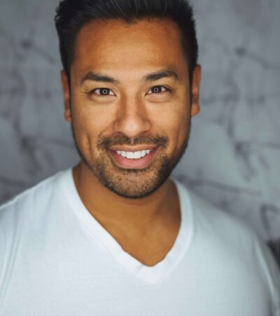 A person holding a red smartphone stands inside a modern store, possibly an electronics or tech store. They are wearing a casual outfit with a crossbody bag. Other people are in the background examining products. Tables display various electronic devices under a sleek, modern interior design with large windows showing an outside street scene.